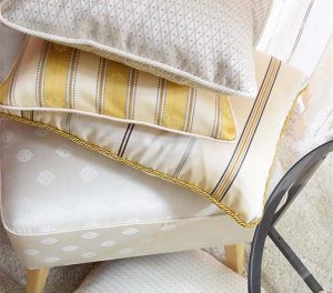 Glatte strukturierte Damast-ähnliche Bezugsstoffe mit klassischen Mustern.Die Stoffe sind in doppelter Breite. Dies hat den Vorteil, dass auch breitere Banken ohne Naht in der Mitte bezogen werden können. Und dadurch auch sehr geeignet für Bettdecken und Vorhängen.Die Stoffe sind schwer entflammbar gem. Norm EN 1021 Teil 1 + 2. Damit auch sehr geeignet für dem Objektbereich wie Hotels, Restaurants usw.
