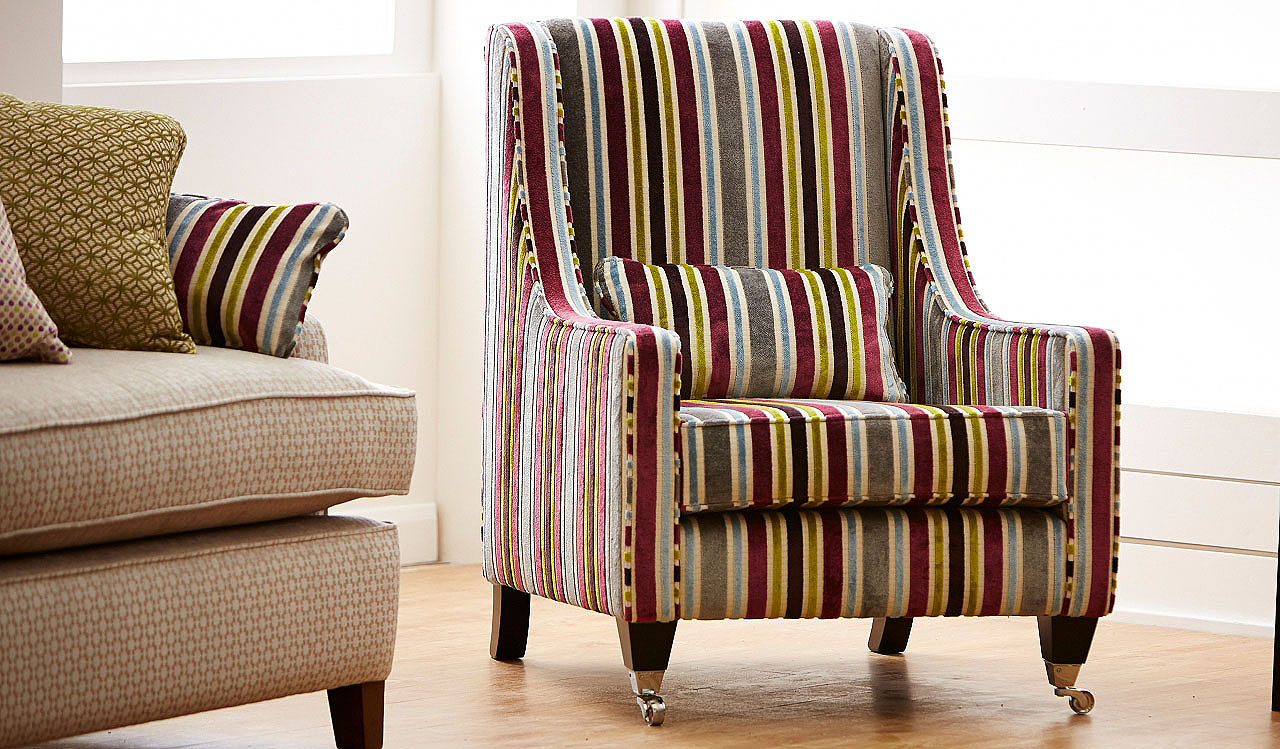 Sammlung dicke, weiche Chenille-Polsterung in modernen und klassischen Designs. Consist Velours Stoffe mit streifen und Polsterstoffe mit kleinen Mustern. Zusammensetzung Gewebe aus Polyester und Baumwolle. Sehr gut geeignet für Polstermöbel, Vorhänge und Kissen.