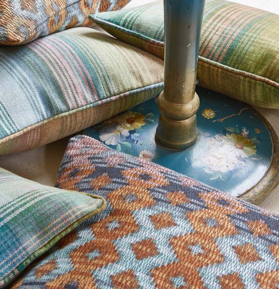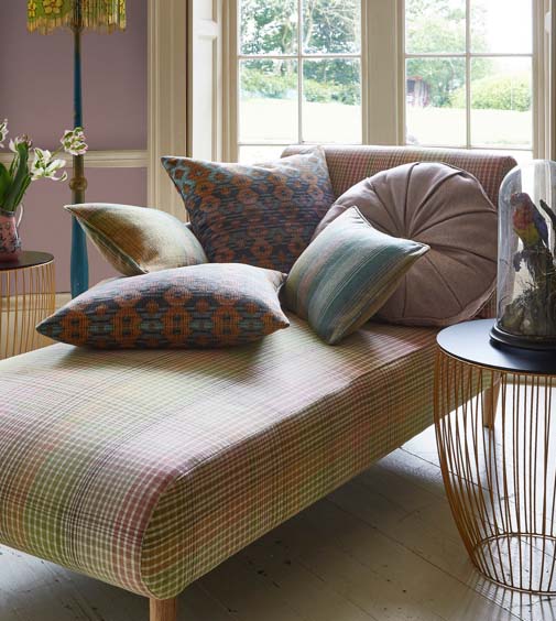 Kollektion lebhafter Möbelstoffe. Streifen, Fischgrät, Ombré und Tartan in frischen, neuen Farben. Unerwartete Tonkombinationen sorgen für zeitgenössische Stimmung, wobei die Wolle weiche Garne für Wärme sorgt. Abriebfestigkeit> 40.000 Martindale. Die Stoffe bestehen aus 100% Polyester und sind daher pflegeleicht und farbecht. Der Preis macht es sicherlich eine besonders attraktive Kollektion.