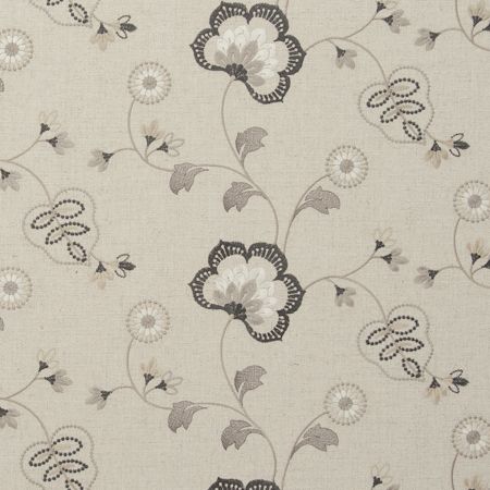 Flexible fein gewebte Vorhangstoff mit gesticktem Blumen-muster. Der Stoff ist geeignet für Vorhänge und als Dekorationsstoff.