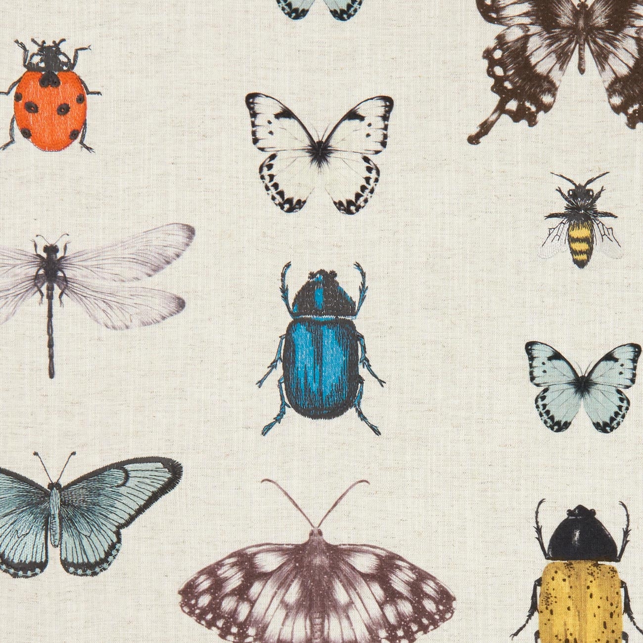 Fein gewebten Dekoration Stoff mit gesticktem Käfern und Schmetterlingen. Breite 137 cm.