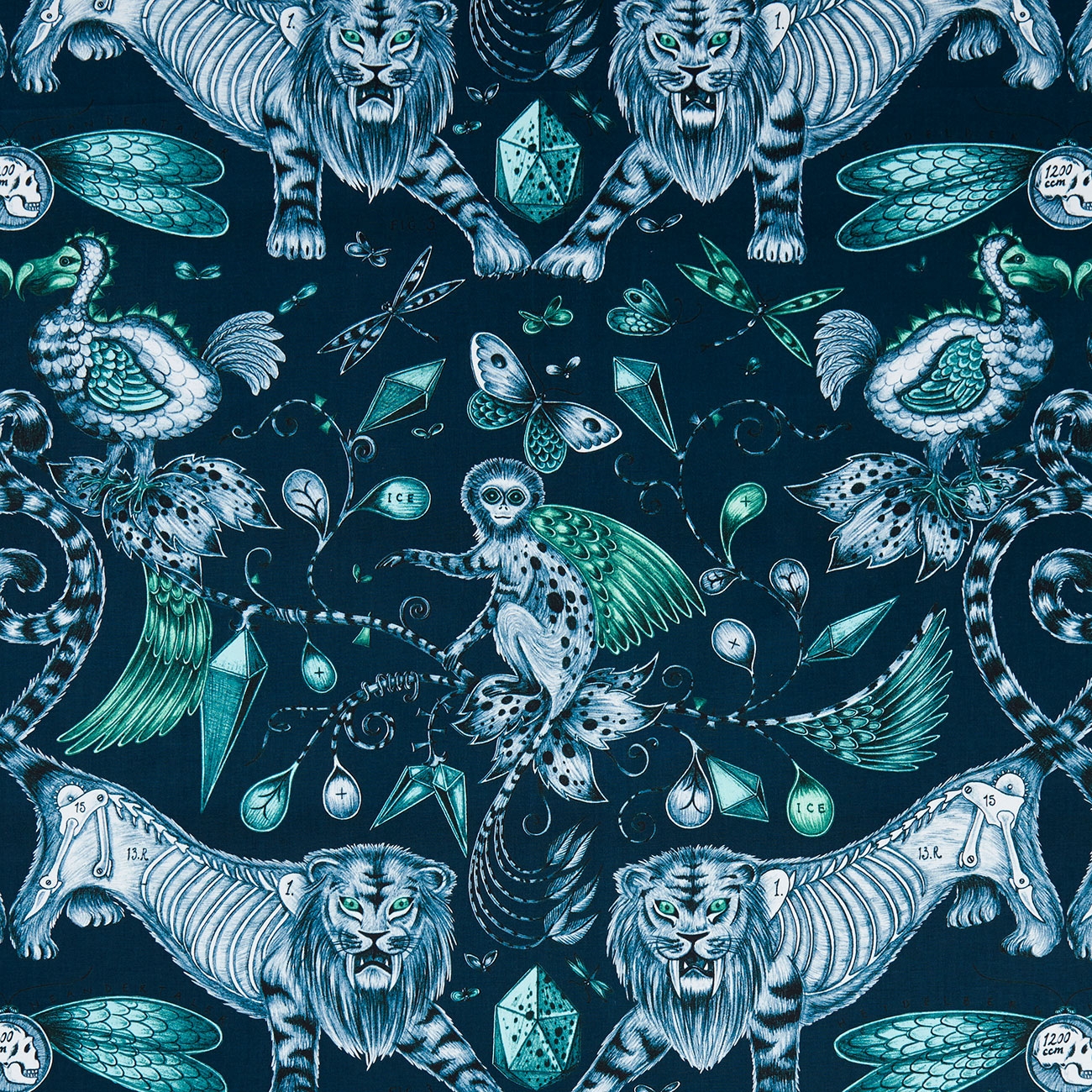 Weich glänzender, satinartiger Möbelstoff mit einem wunderschönen Muster der Künstlerin Emma J Shipley. Dieses Stoff weist eine Abriebfestigkeit von 30.000 Martindale. Geeignet für Möbelpolster, Vorhänge und Dekoration.