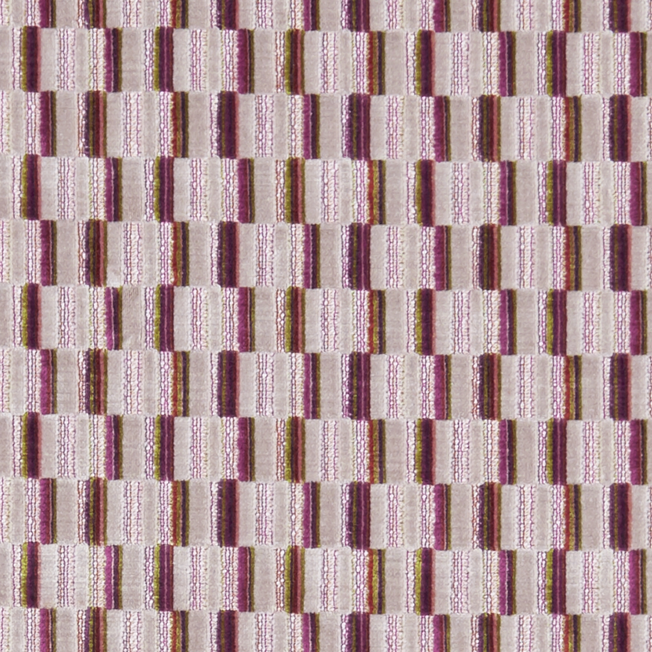 Luxuriöser Samtbezug mit geometrischem Muster. Abriebfestigkeit 50.000 Martindale. 137 cm breit.