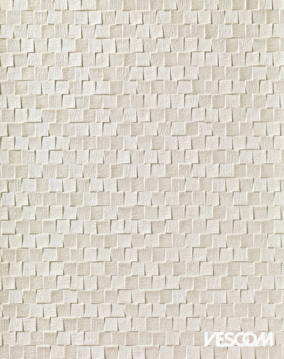Vinyl-Wandbekleidung mit einer Struktur aus kleinen Quadraten, die in verschiedene Richtungen abfallen.