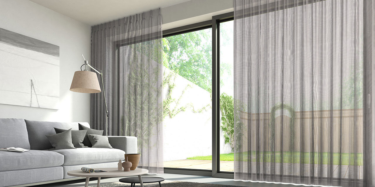 Slinger ist ein glatte transparente Vorhänge. Der Stoff ist 320 cm hoch und besteht aus einembesteht aus einem transparenten feuerhemmenden Trevira CS. Dieses Gewebe ist besonders geeignet für den kommerziellen Einsatz.