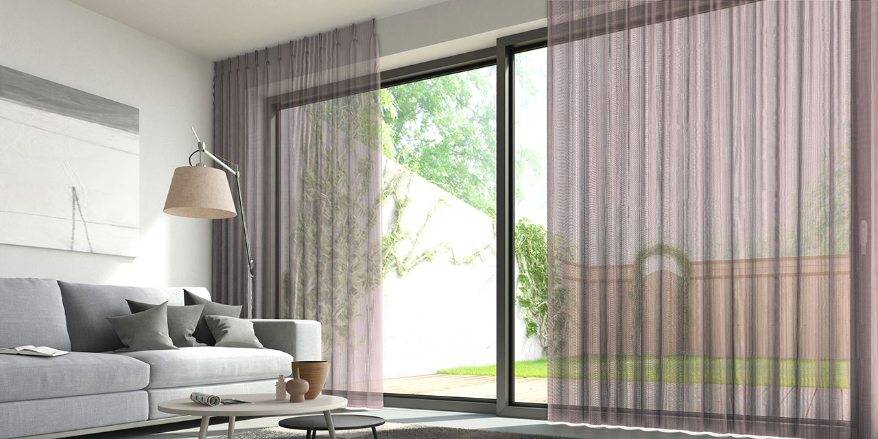 Slinger ist ein glatte transparente Vorhänge. Der Stoff ist 320 cm hoch und besteht aus einembesteht aus einem transparenten feuerhemmenden Trevira CS. Dieses Gewebe ist besonders geeignet für den kommerziellen Einsatz.