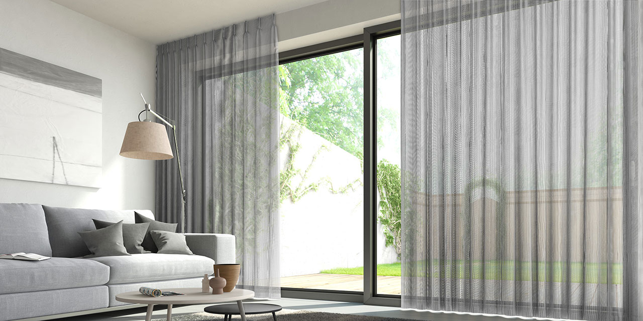Slinger ist ein glatte transparente Vorhänge. Der Stoff ist 320 cm hoch und besteht aus einembesteht aus einem transparenten feuerhemmenden Trevira CS. Dieses Gewebe ist besonders geeignet für den kommerziellen Einsatz.