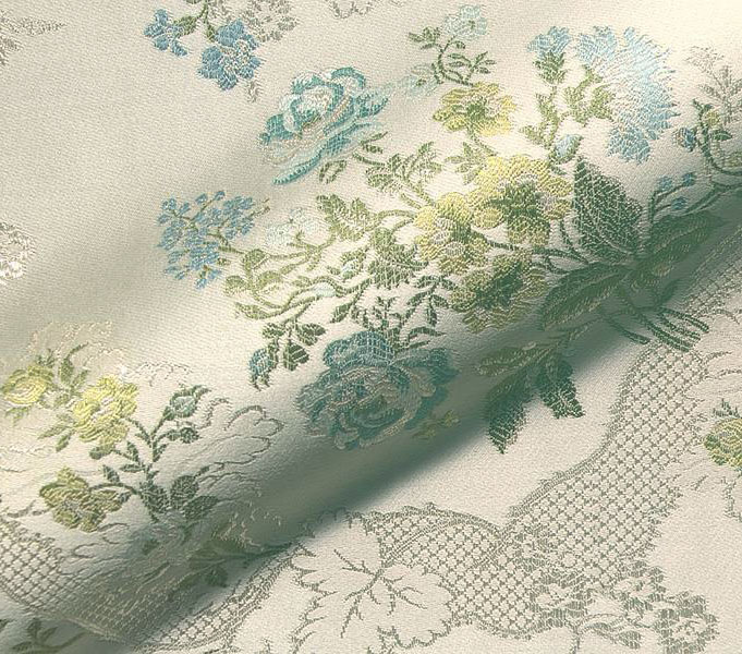 Ein fein gewebter Stoff mit einem „gestickten“ Entwurf. Sehr geeignet für Möbelpolsterung, als Vorhangstoff und für dekorative Zwecke wie dekorative Kissen.