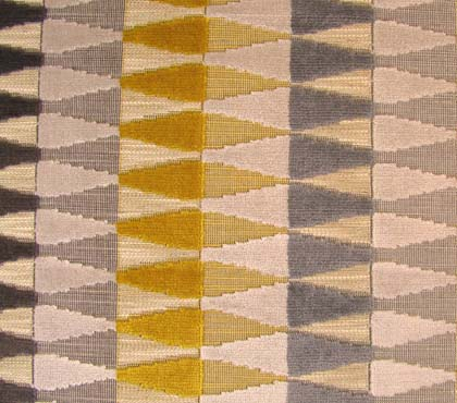 Moderner Möbelstoff mit schönem Grafikdesign. Der Stoff hat eine feine Struktur und überlagerte Veloursmuster. Abriebfestigkeit 25.000 Martindale. 140 cm breit.