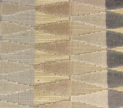 Moderner Möbelstoff mit schönem Grafikdesign. Der Stoff hat eine feine Struktur und überlagerte Veloursmuster. Abriebfestigkeit 25.000 Martindale. 140 cm breit.