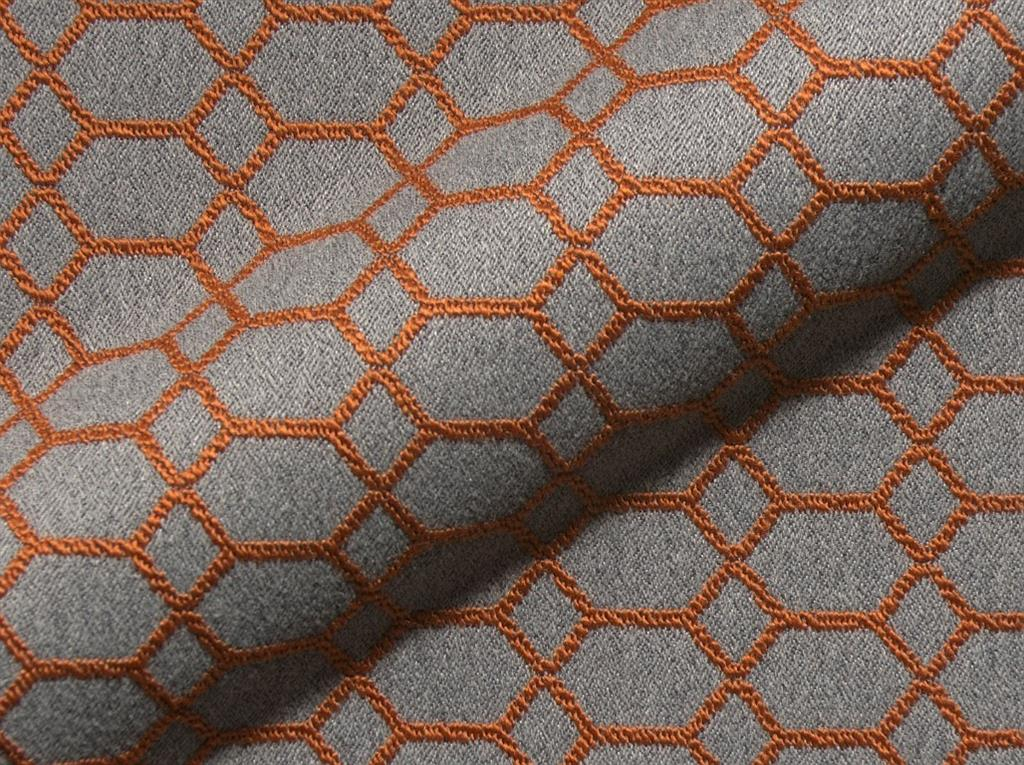 Glatter Möbelstoff mit geometrischem Design. Der Stoff hat eine feine Struktur. Abriebfestigkeit 18.000 Martindale. 144 cm breit. 5 Jahre Garantie