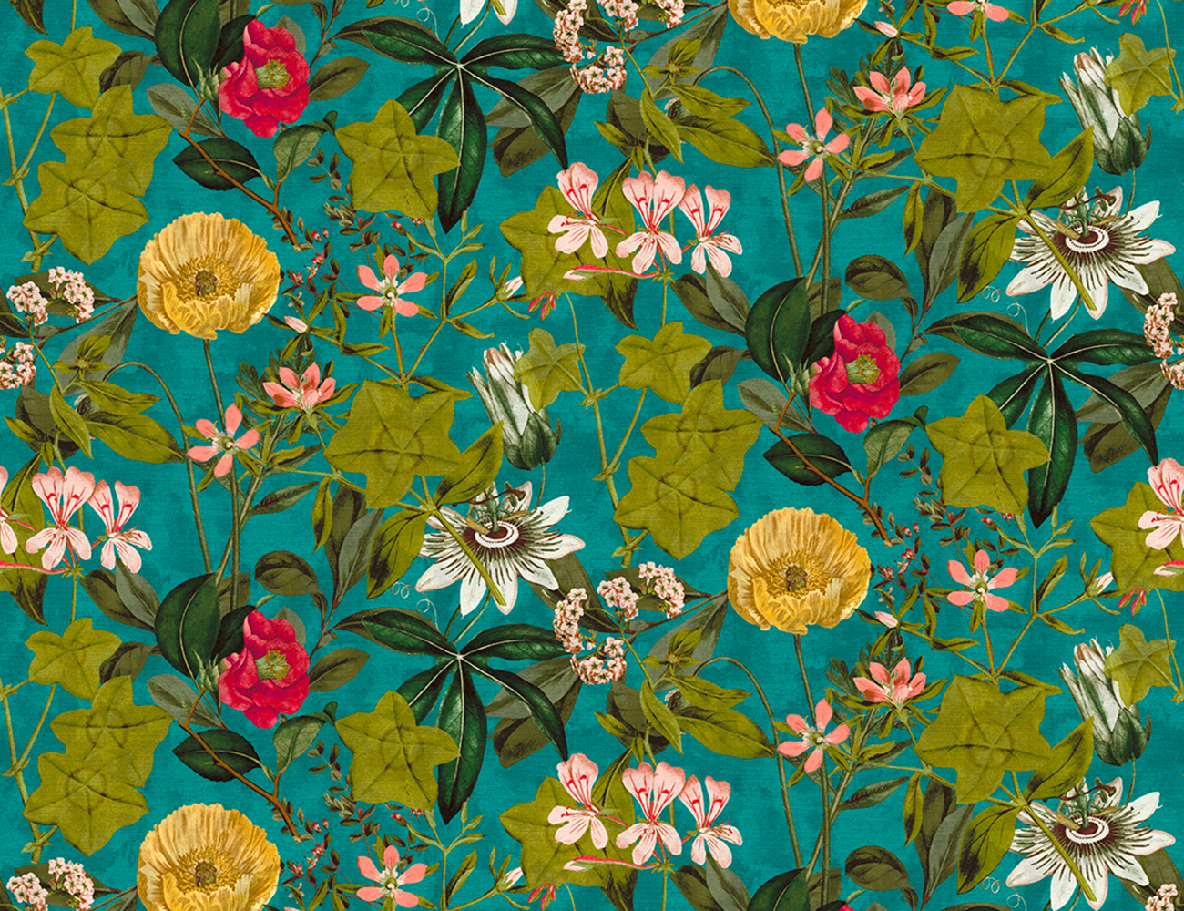 Schwer Samtpolsterung und Vorhangstoff. Der Stoff hat einen botanischen Aufdruck. Abriebfestigkeit 50.000 Martindale. 137 cm breit.