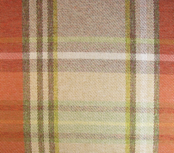 Möbelstoff mit einem Tartanmuster. Der Stoff hat eine warme, wollene Aussehen. Hergestellt aus starkem Polyester-Garn. Der Stoff ist geeignet für Polster, Kissen und Vorhänge.