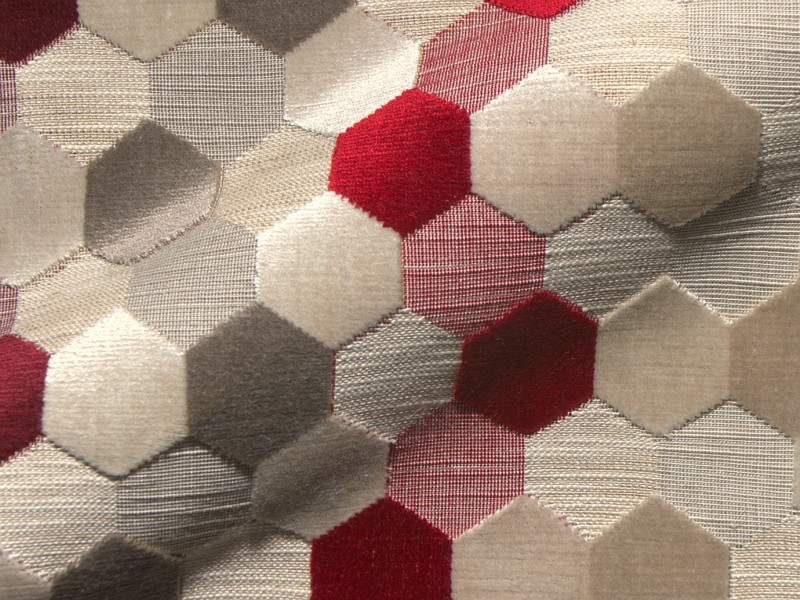 Möbelstoff mit Wabenmuster. Dieser Stoff hat eine Leinenoberfläche kombiniert mit warmem Velours. Abriebfestigkeit 25,000 Scheuertouren Martindale. 138 cm breit.