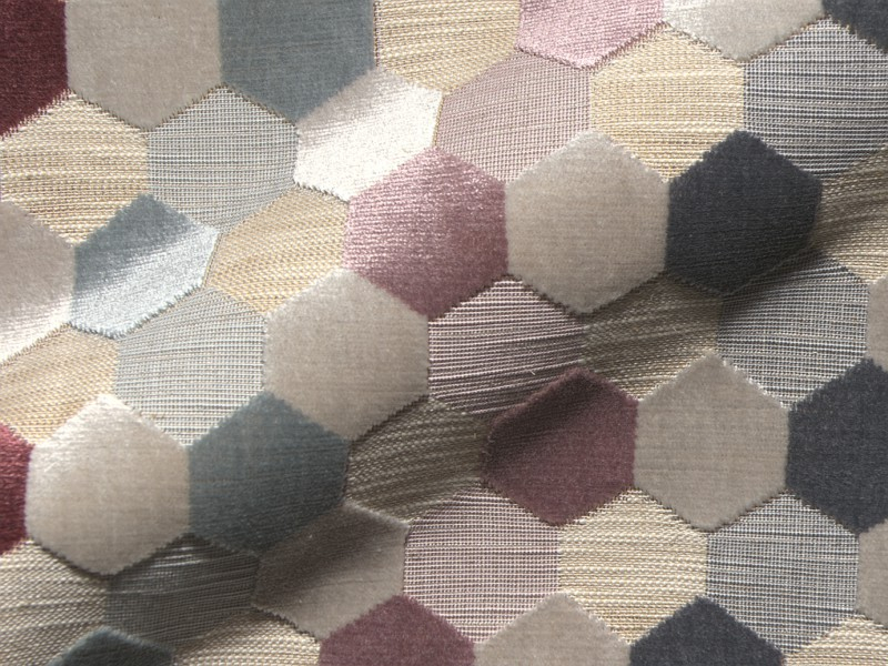 Möbelstoff mit Wabenmuster. Dieser Stoff hat eine Leinenoberfläche kombiniert mit warmem Velours. Abriebfestigkeit 25,000 Scheuertouren Martindale. 138 cm breit.