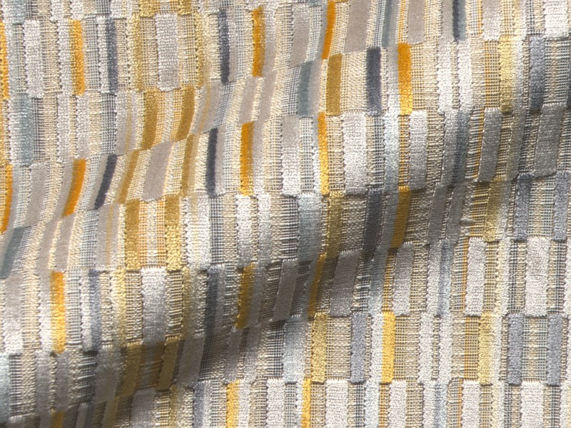 Möbelstoff mit einem überraschenden Muster. Dieser Stoff hat eine Leinenoberfläche kombiniert mit warmem Velours. Abriebfestigkeit 25,000 Scheuertouren Martindale. 138 cm breit.